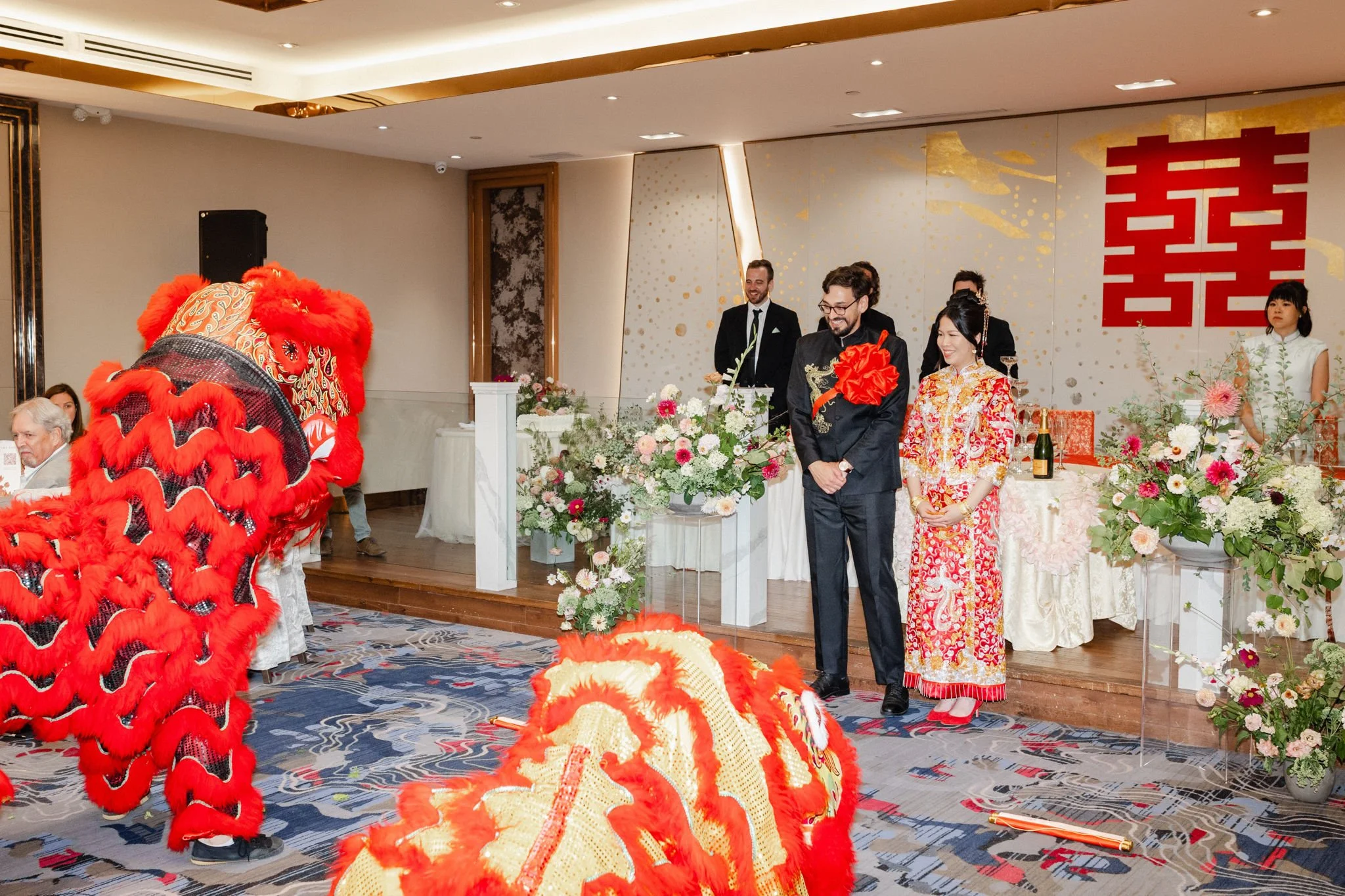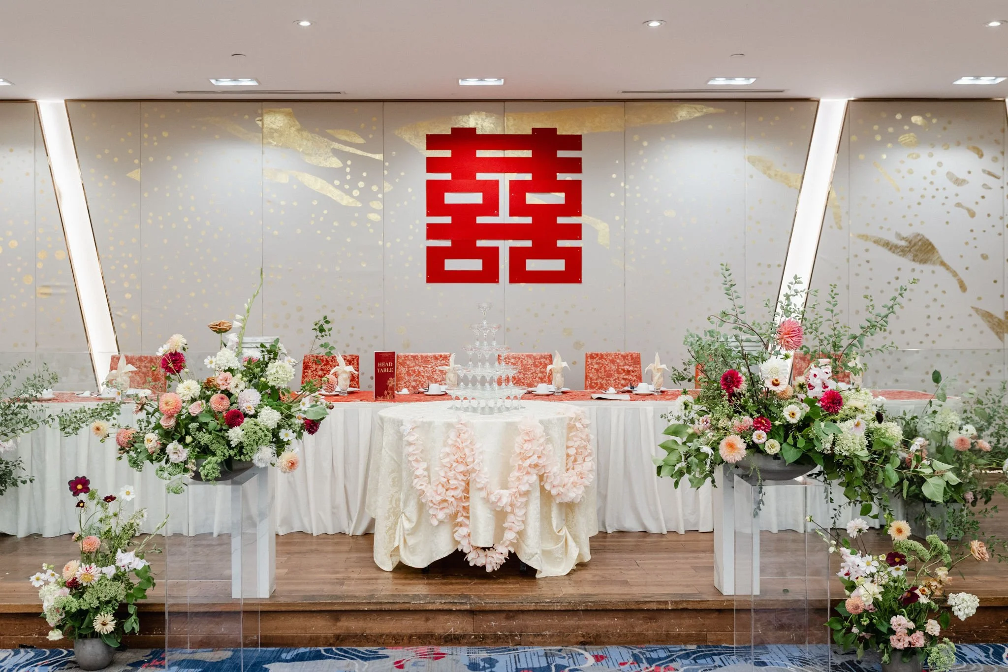 After the ceremony, we repurposed the arch to beautify their Chinese banquet hall, adding an extra touch of charm.