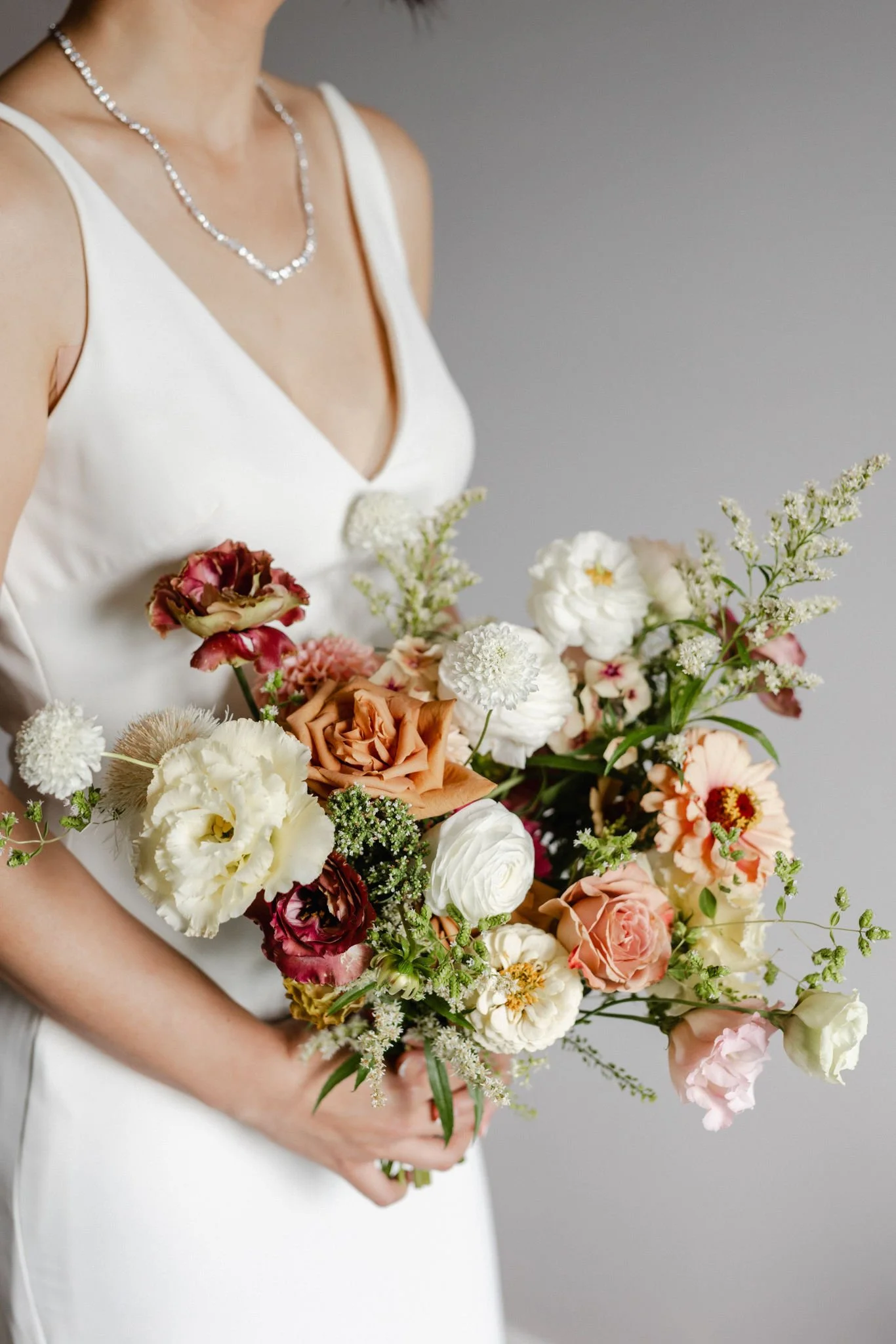 With their vibrant and joyful personalities, they wanted their flowers to mirror that fun spirit. We grew them a stunning array of blooms, including cosmos, dahlias, gladiolus, and flowering herbs, just for their special day.